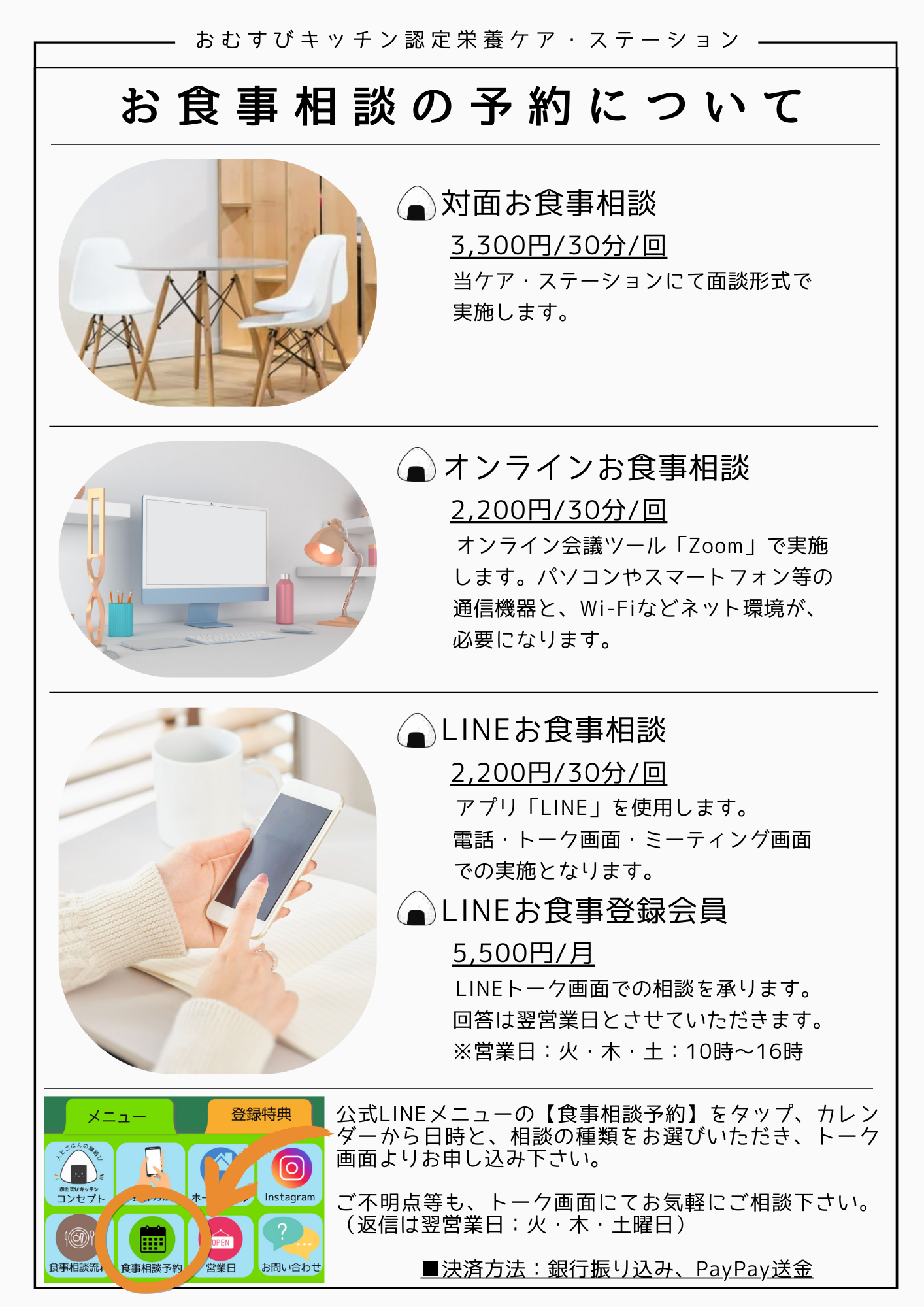 お食事に関するご相談を承ります。