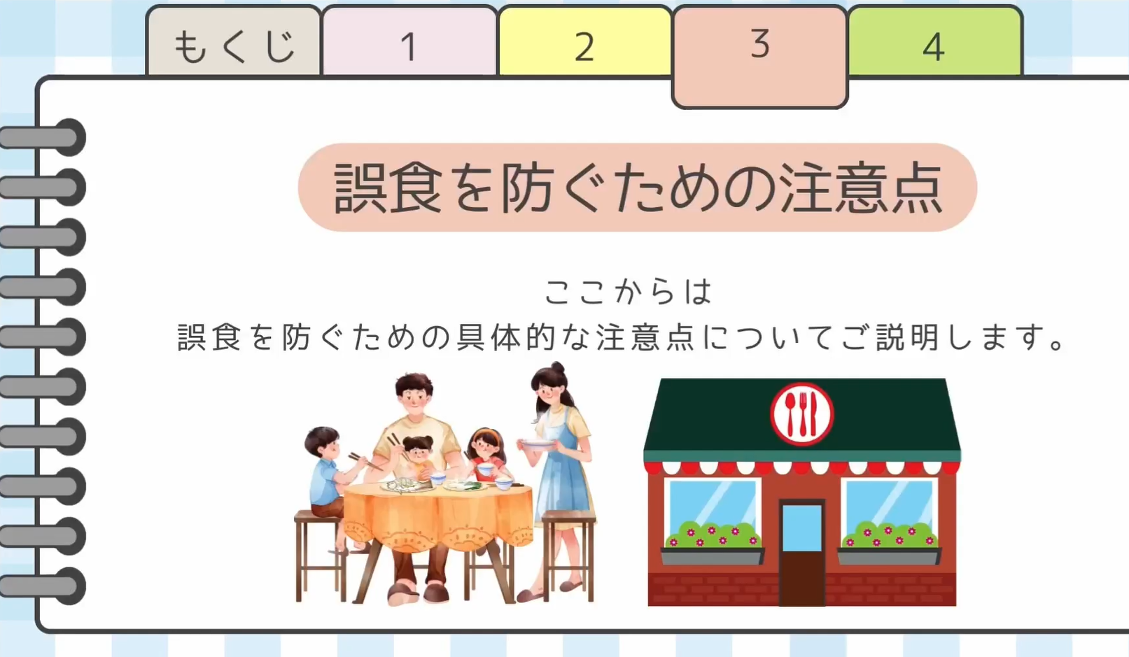 また、「誤食を防ぐための注意点」として、キッチン編、
