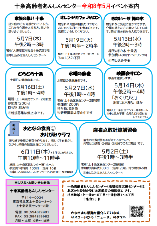 こちら、高齢者あんしんセンター様の5月のイベントチラシに